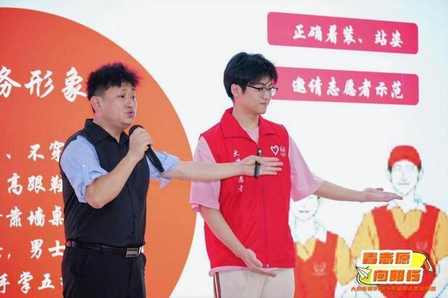 仪式最后,一场志愿技能培训课如期举行。大浪街道志愿者联合会骨干化身导师,向青少年传授志愿服务礼仪等实用技能,结合真实案例讲解如何温和回应群众咨询、突发情况如何冷静高效协调等沟通技巧,并现场示范引导手势、物品递送等细节礼仪,让青少年通过模拟练习加深理解。培训尾声,大家庄严宣誓,凝聚志愿服务的初心与力量。